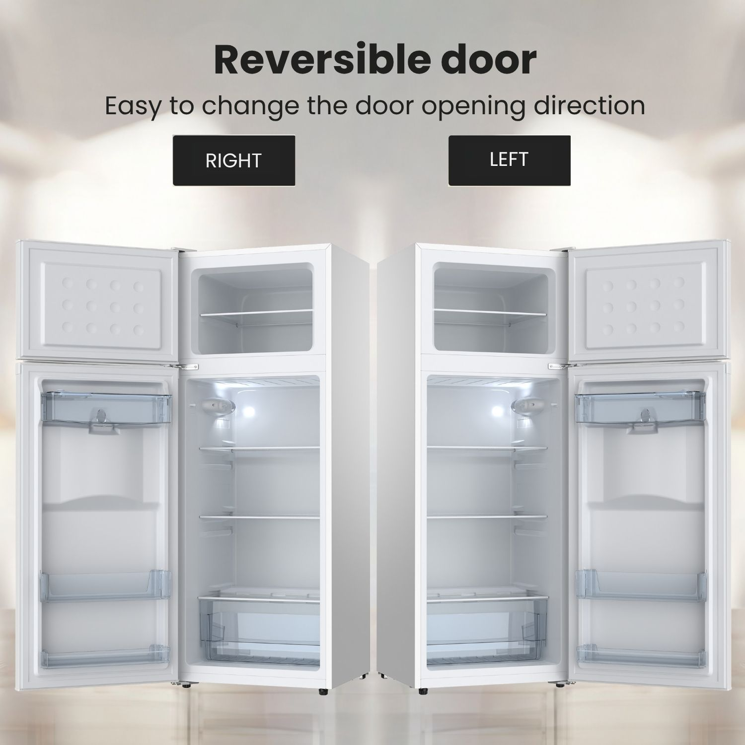 Can’t find the perfect spot for your refrigerator? The door opening direction of your StarCrest appliance can be easily changed from left to right or right to left, allowing it to better fit your space.