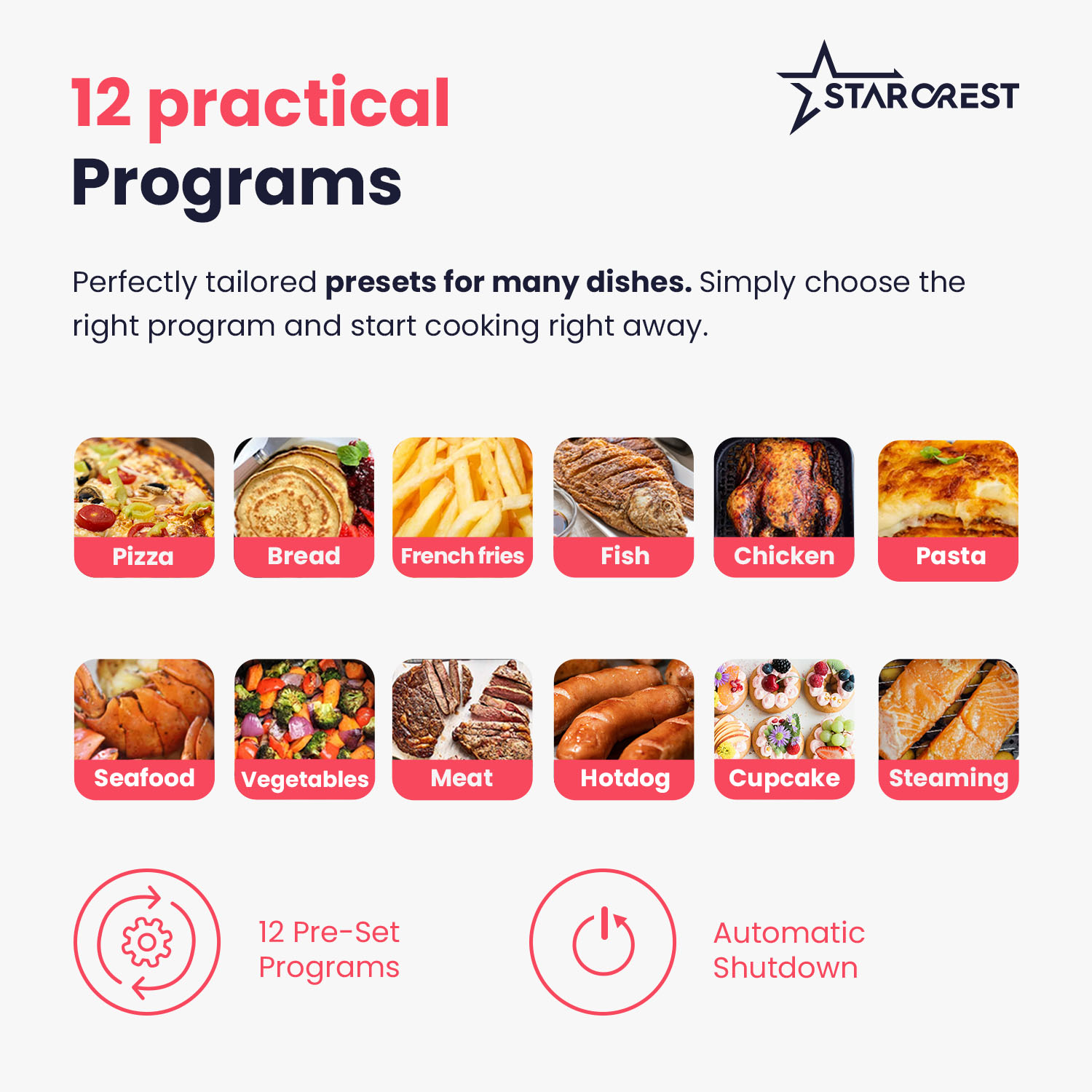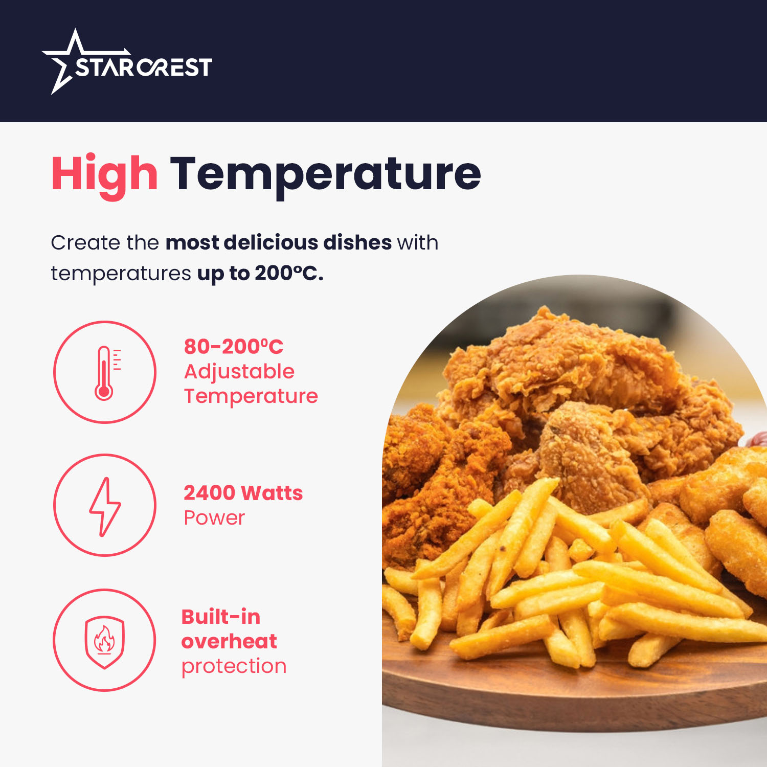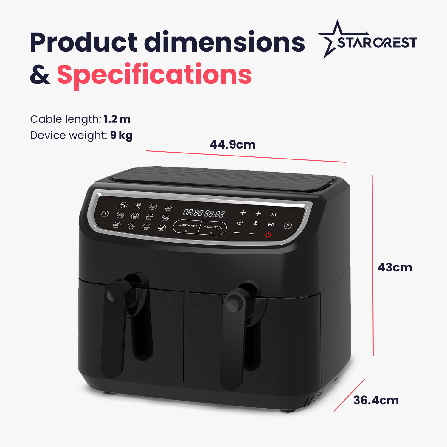 STARCREST Air Fryer SFR-9024BK, 2400 W, Double Basket, 9 Liters, Thermostat 80 - 200 °C, 12 Programs, Black
