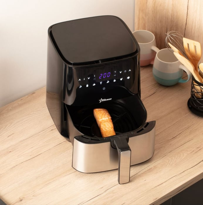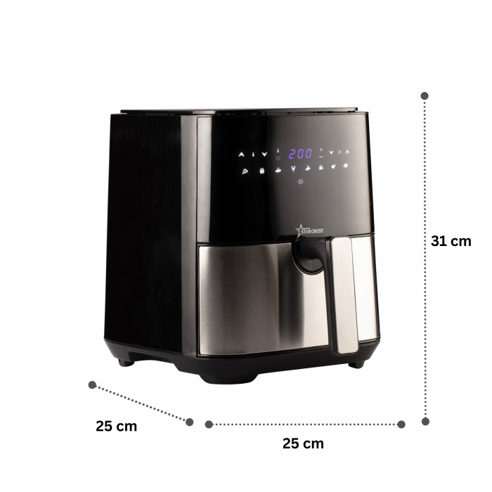 The STARCREST Digital Air Fryer SFR-5050X, 1450W, from STARCREST makes it possible to fry, bake, cook, and roast healthy meals for the whole family. Its 5-liter capacity allows you to prepare a large batch of delicious, crispy fries in a single use.