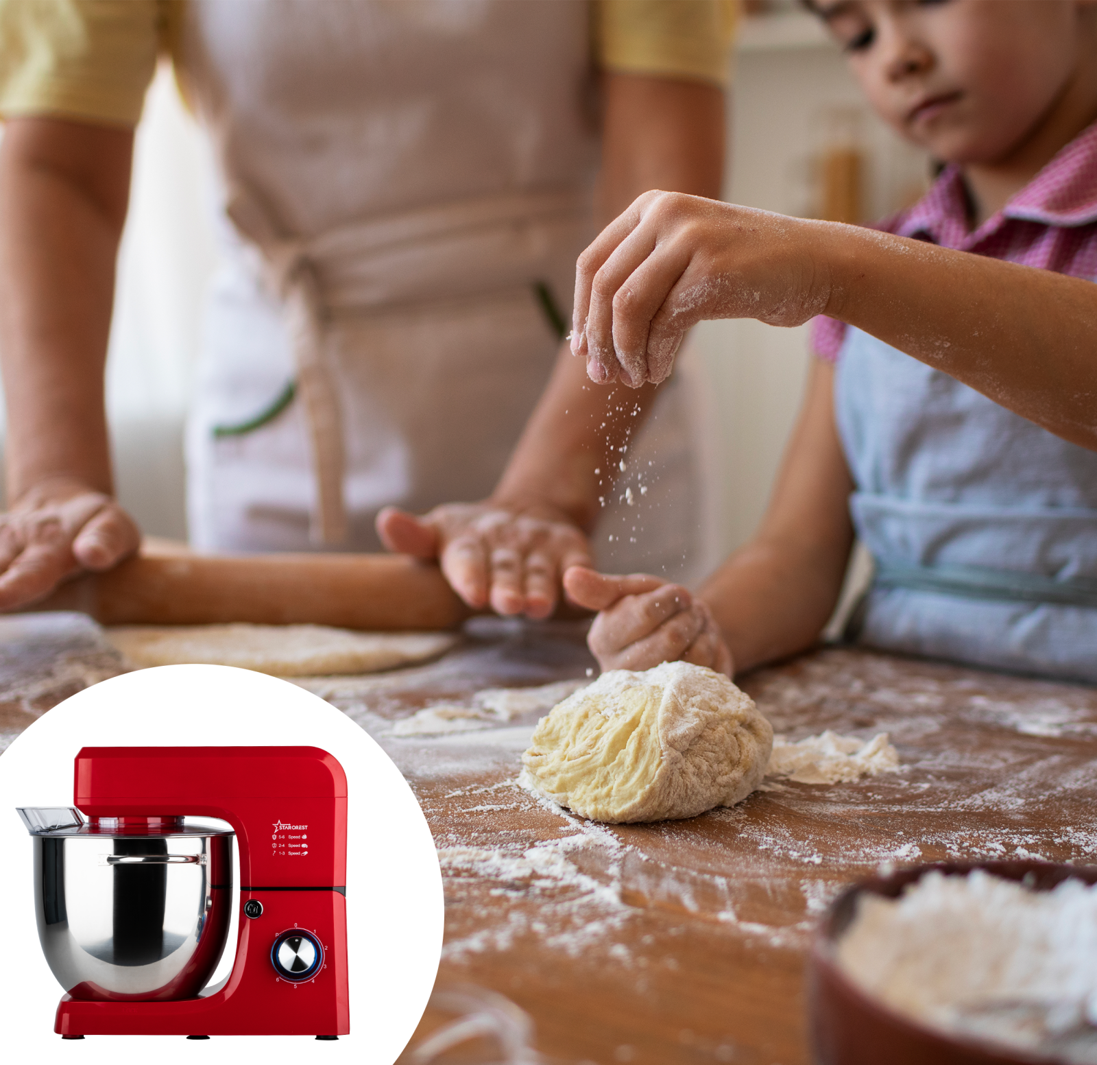 The STARCREST SKM-2002RD stand mixer is a real help in the kitchen, significantly reducing the time spent cooking.
