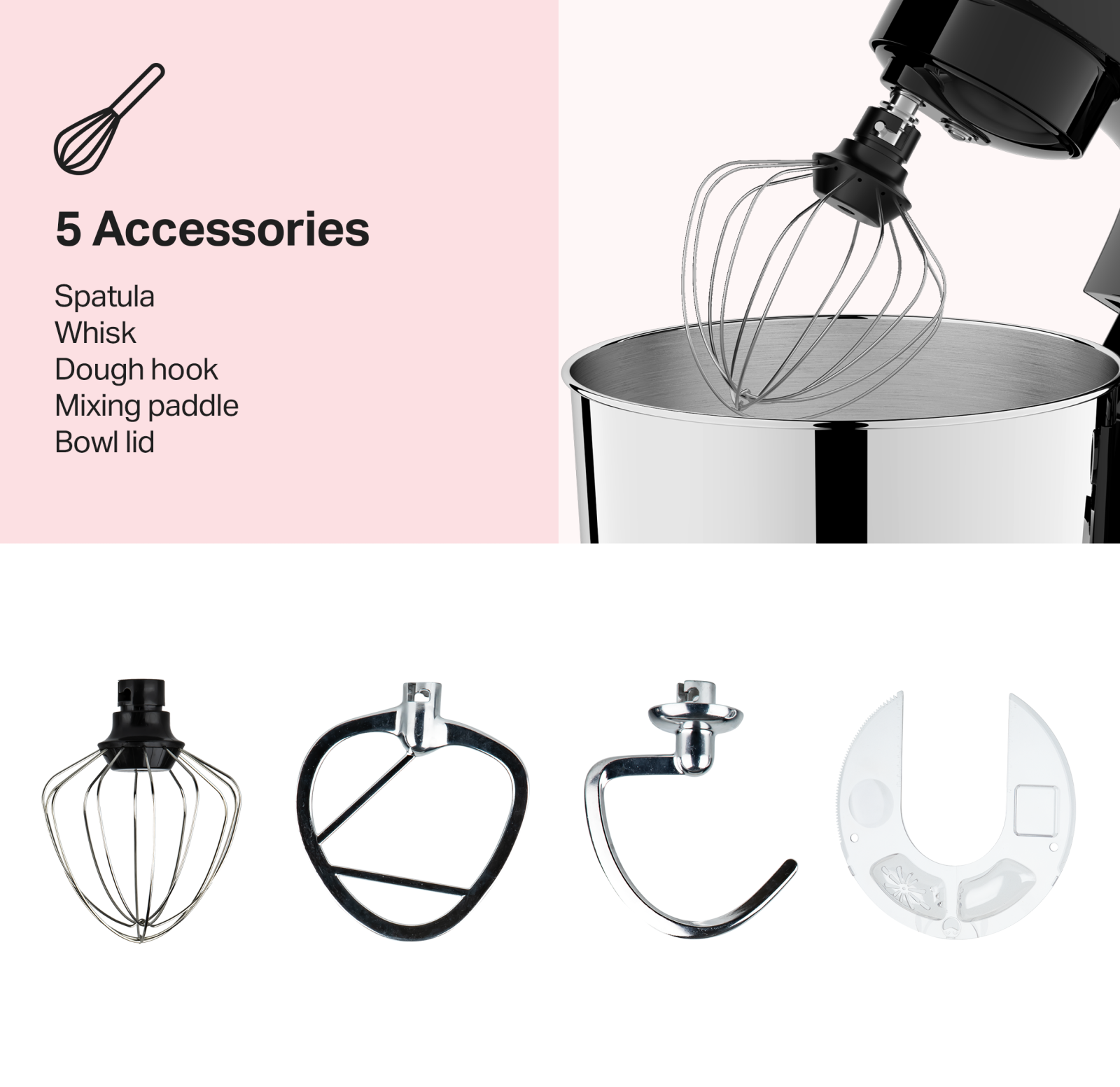 • Generous 4.5L stainless steel bowl: Perfect for preparing large quantities of dough, cream, or batter