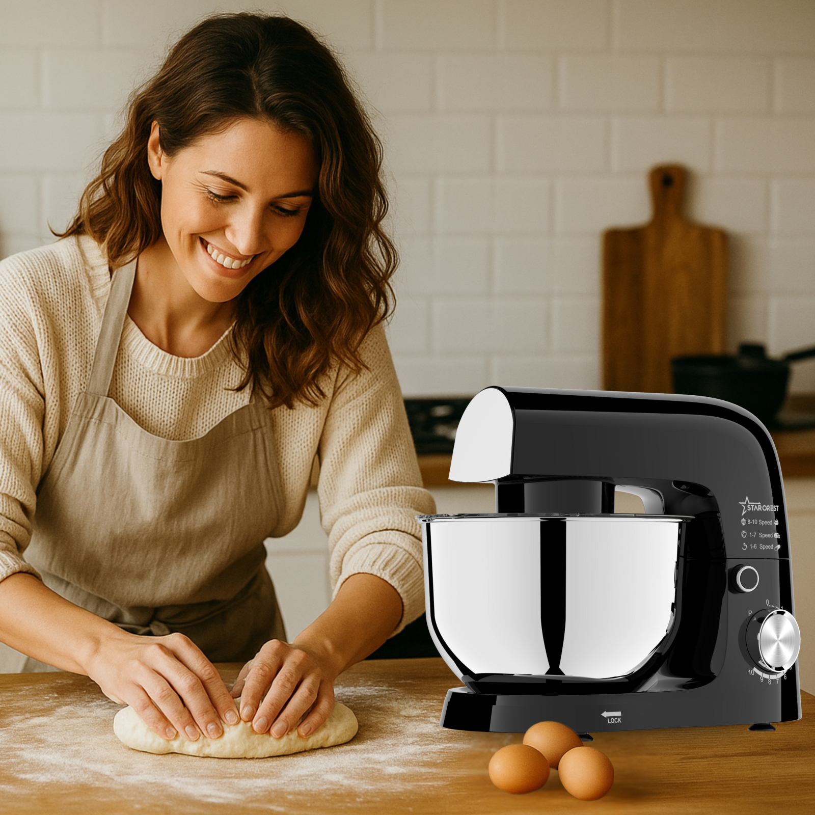 STARCREST Stand Mixer SKM-1015BK, 1500 W, 4.5 L Stainless Steel Bowl, 5 Accessories, 10 Speeds + Pulse, Black