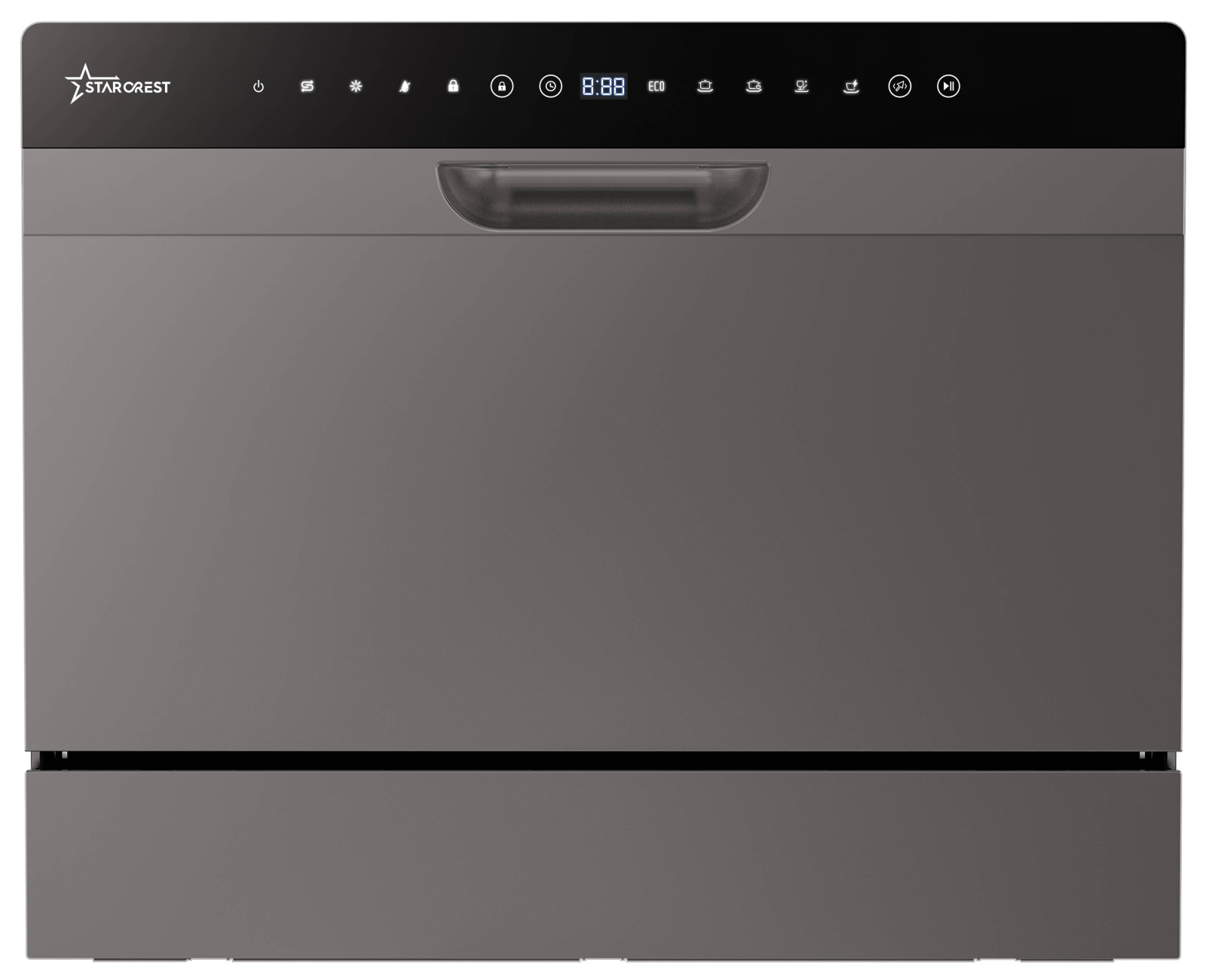 STARCREST SDW-601-SL Dishwasher, 6 Place Settings, 5 Programs, Class D, Black Glass Control Panel, Digital Control Panel, Eco Mode, Flexible Installation, Grey