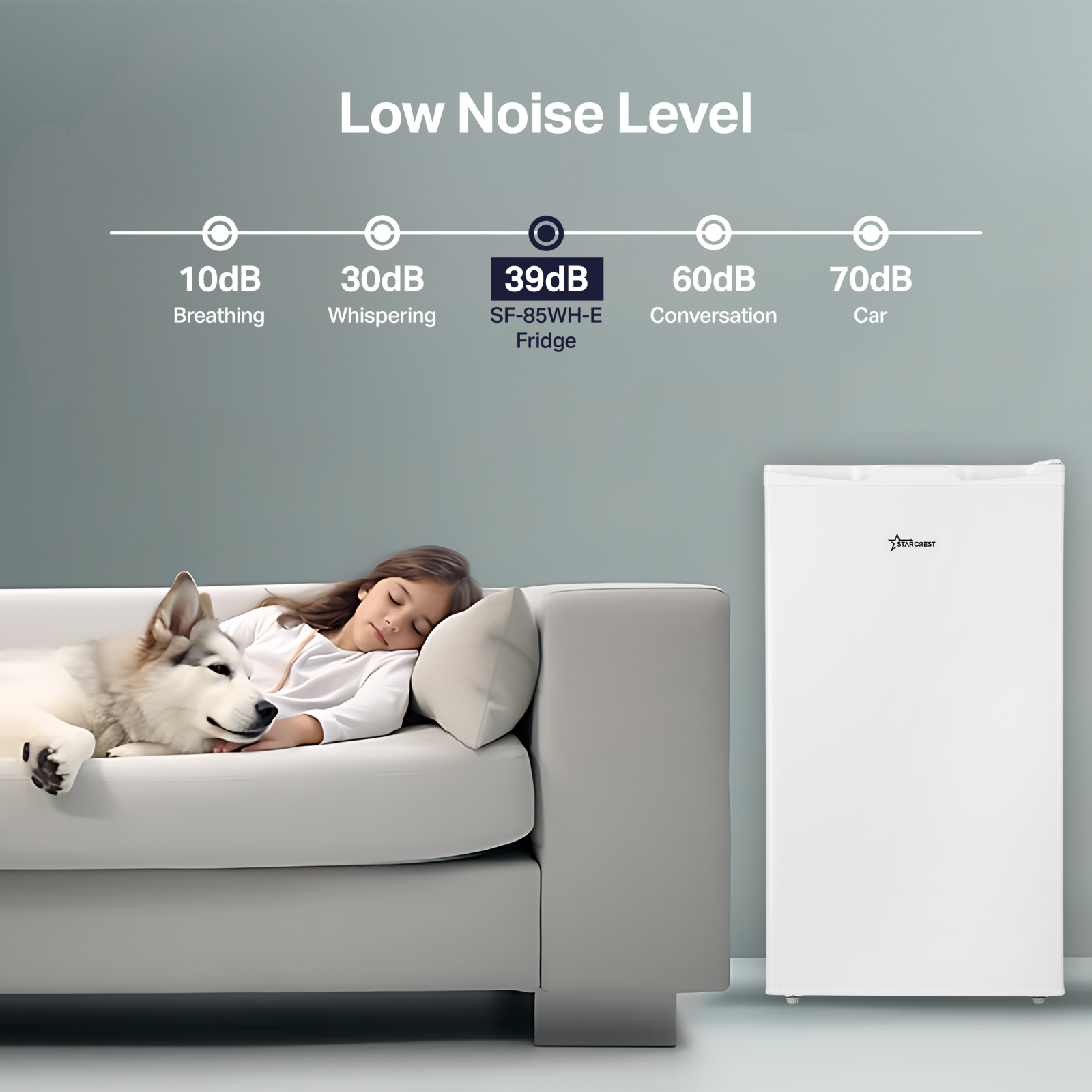 STARCREST Single Door Refrigerator SF-85WH-E, 85 L, Energy Class E, Interior Lighting, Ice Compartment, Height 82 cm, White